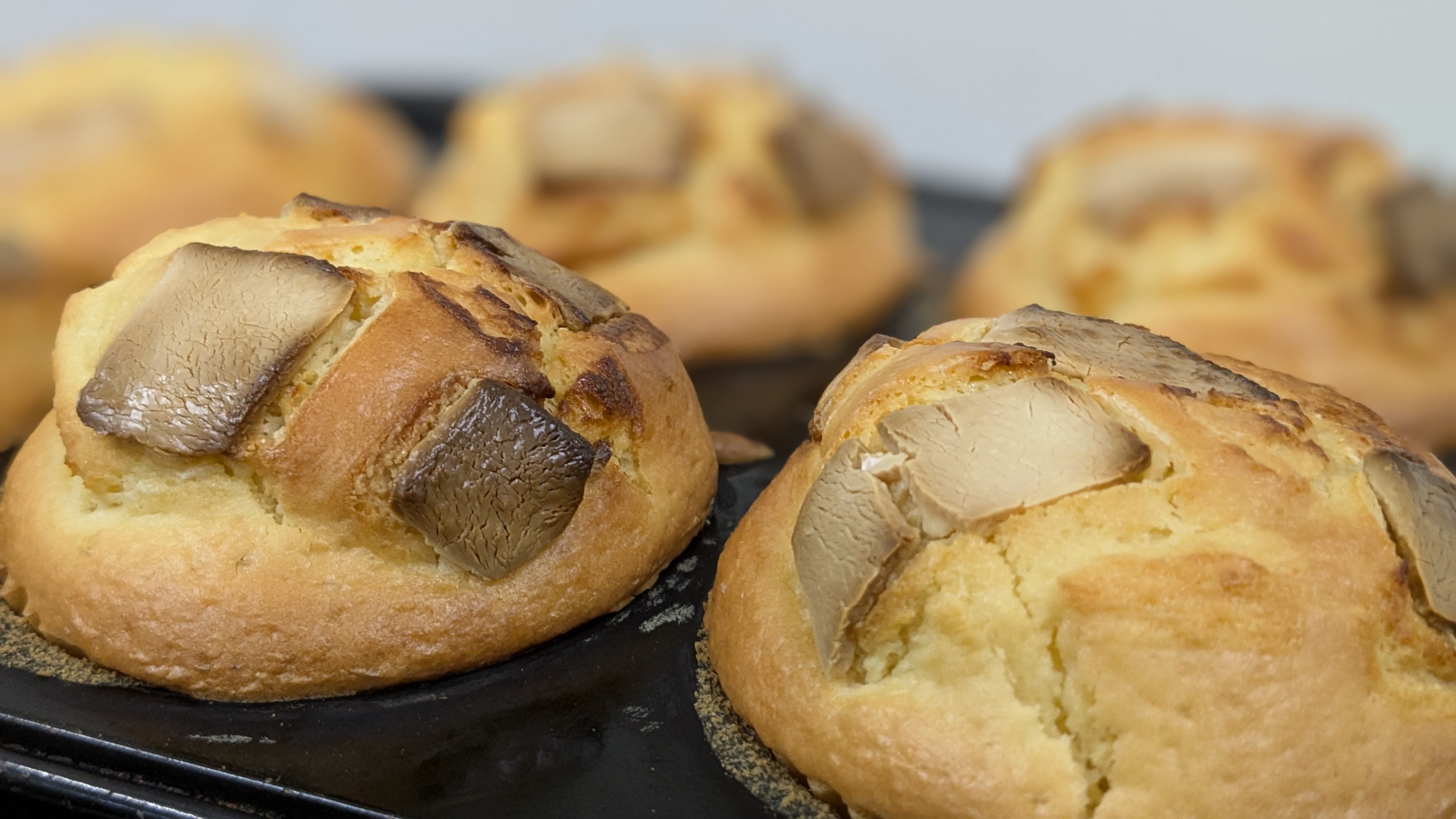 米粉と甜菜糖の生地の中に生チョコを入れて、上のホワイトチョコを焼きチョコにしました。